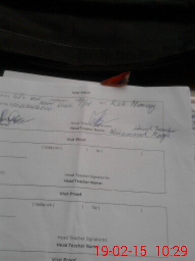 | Attendance Register | Head Teacher | MEA with School | Visit Proof |