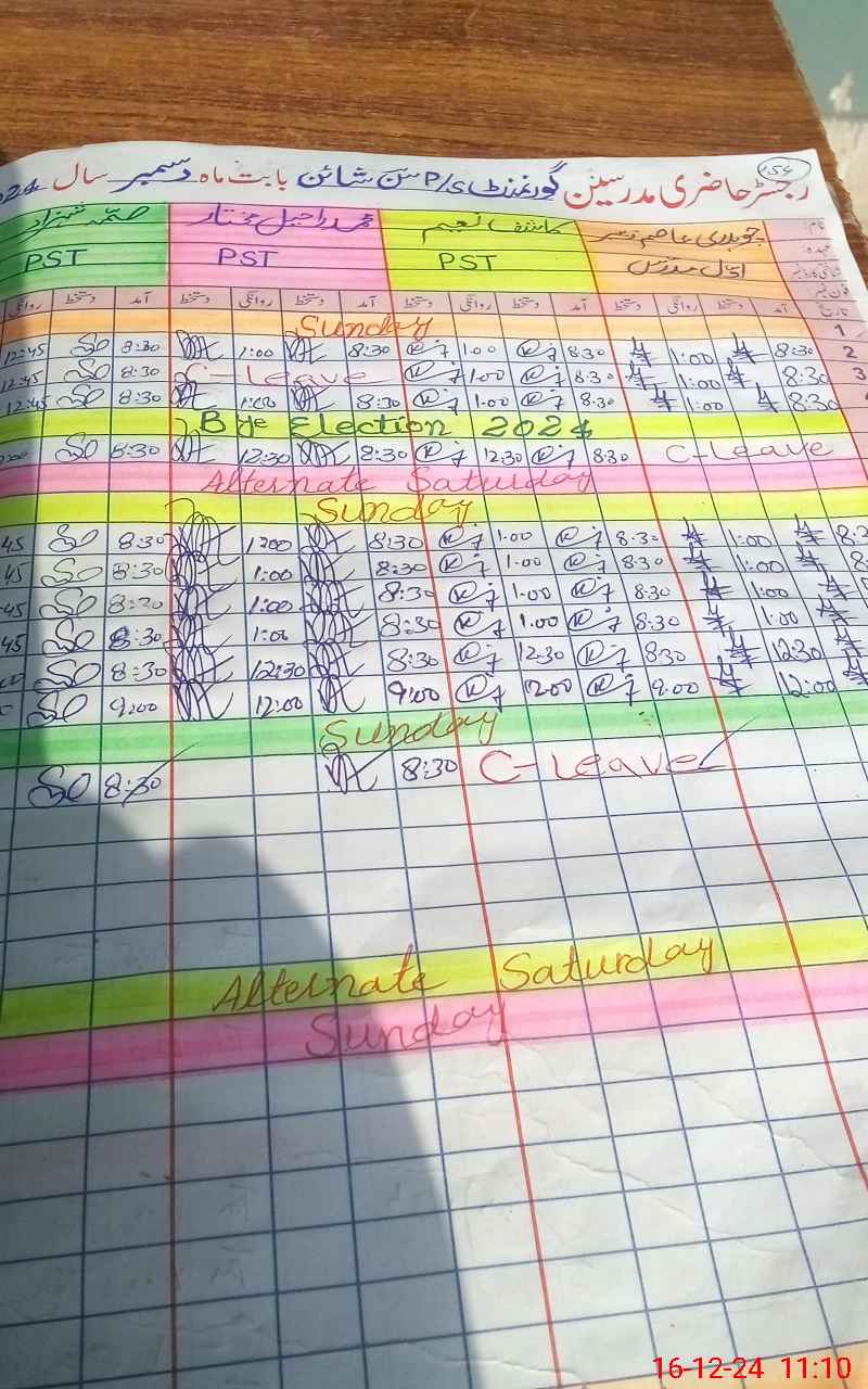 | Name: AS**** ZU**** Designation: (School Headmaster's/Headmistress's) PST Phone/Cell Number: 03**** |