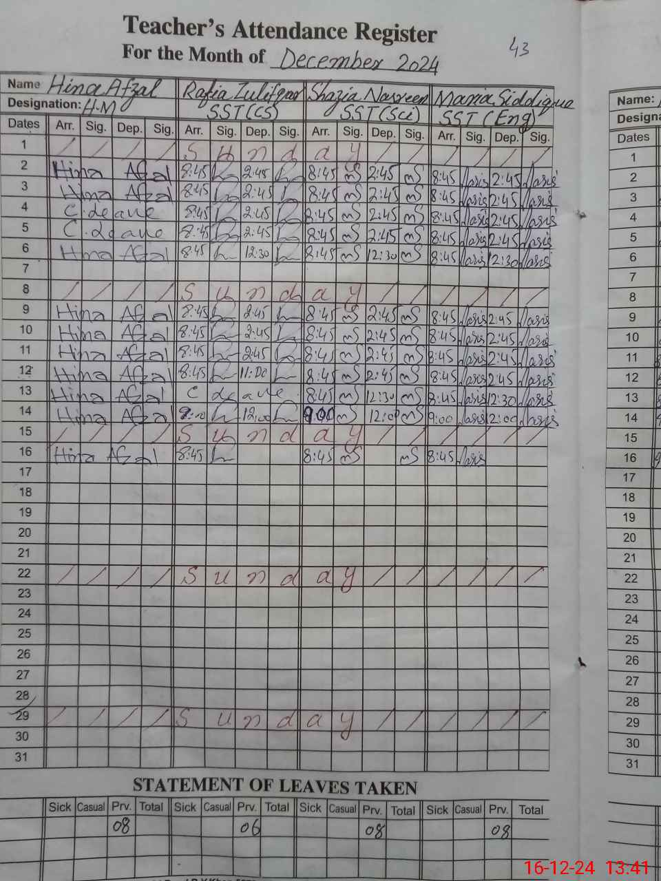 | 31**** | Sa**** Sh**** | PST | Regular | 30 | 0 | 0 | 30 | 0 | 0 | 0 | 0 | 0 | Maternity |