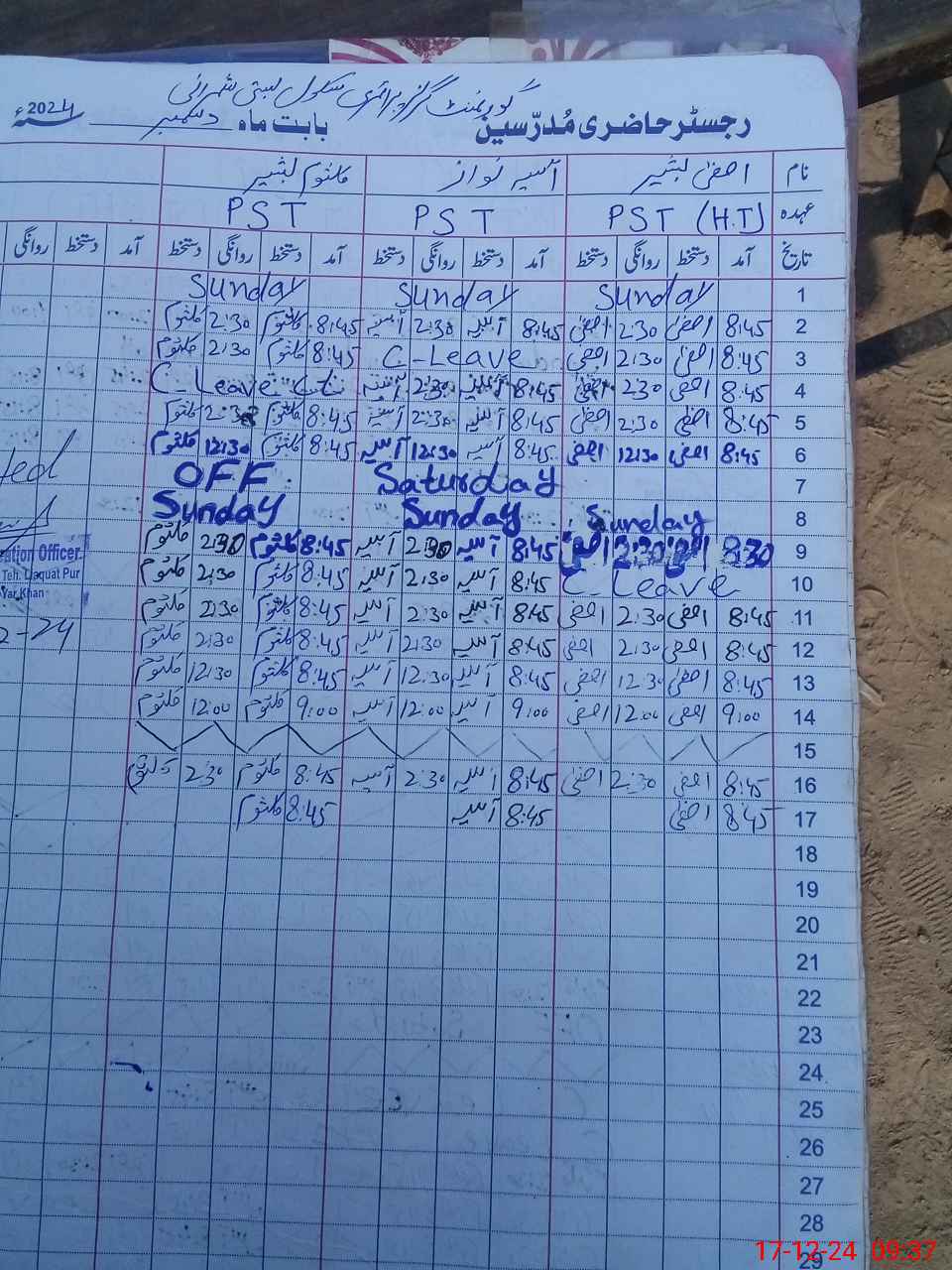 | Name: As**** Ba**** Designation: (School Headmaster's/Headmistress's) PST Phone/Cell Number: 03**** |