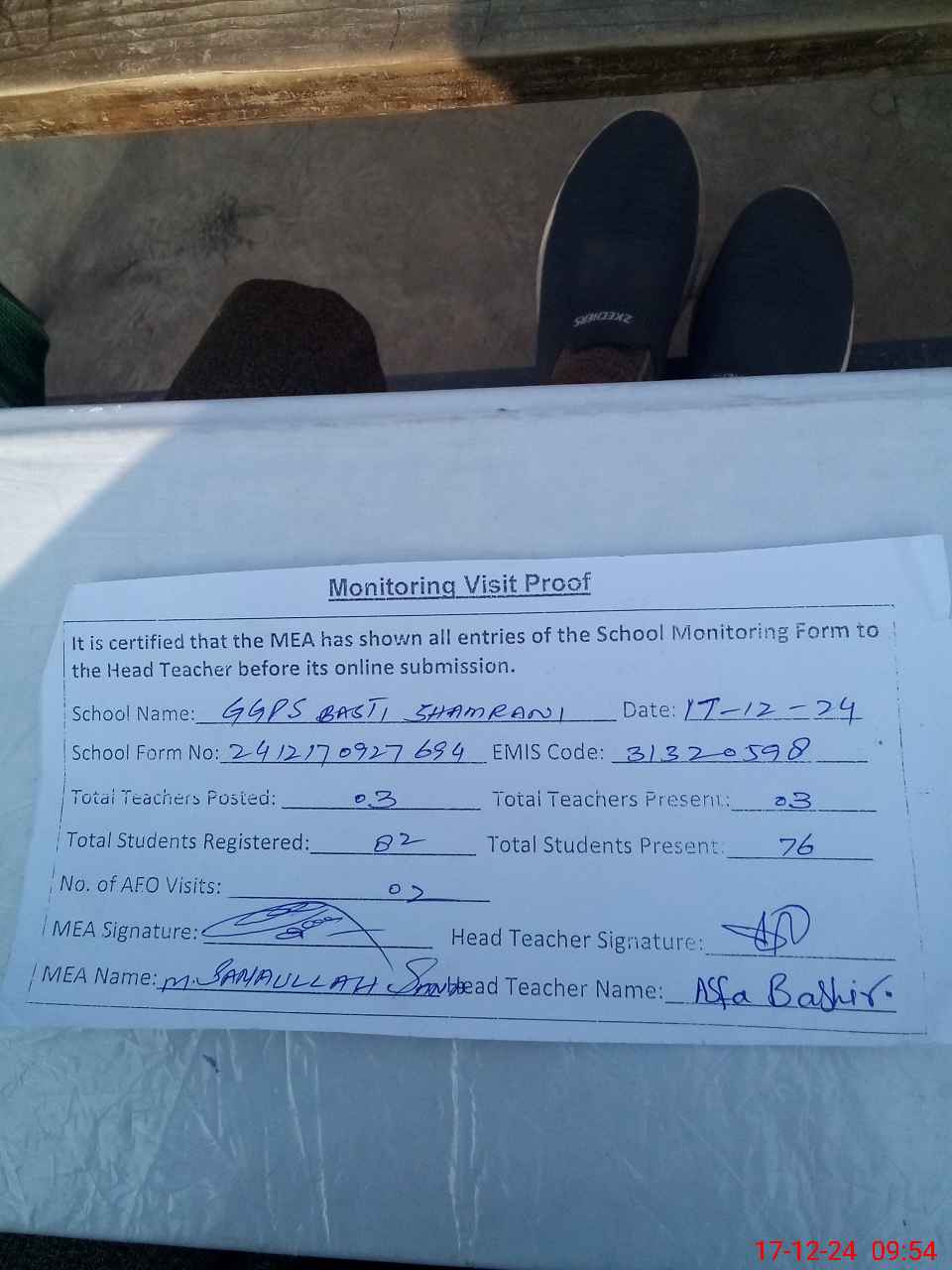 | EMIS Code: 31320598 | Name of School: GGPS BASTI SHAMRANI | |||
