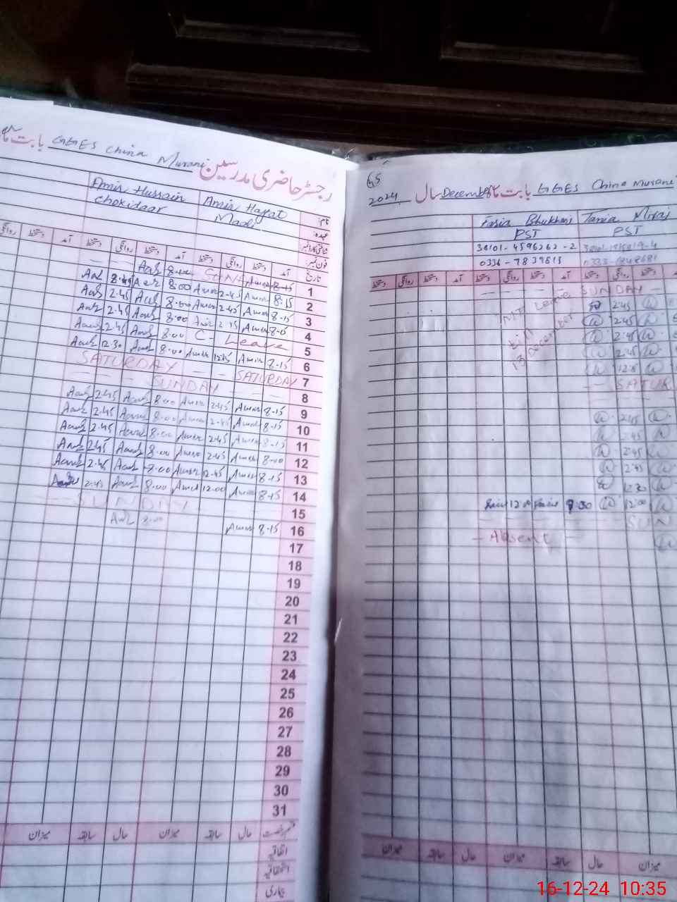 | CNIC | Full Name | Designation | R/C | Absence During Last Calender Month |
