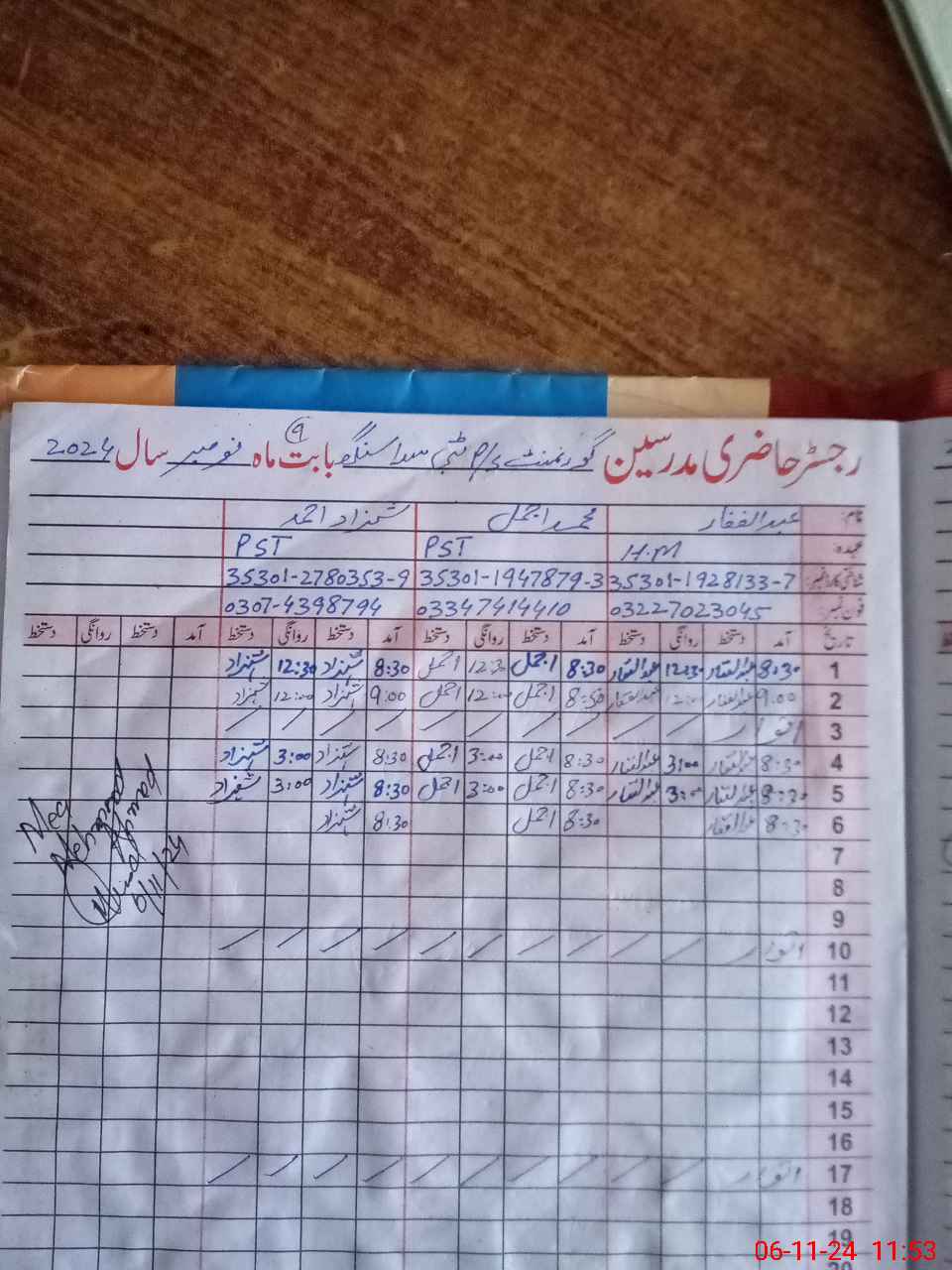 | CNIC | Full Name | Designation | R/C | Absence During Last Calender Month |