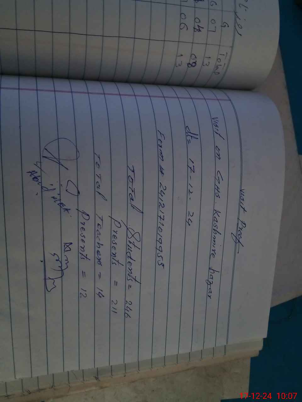 | Attendance Register | Head Teacher | MEA with School | Visit Proof |