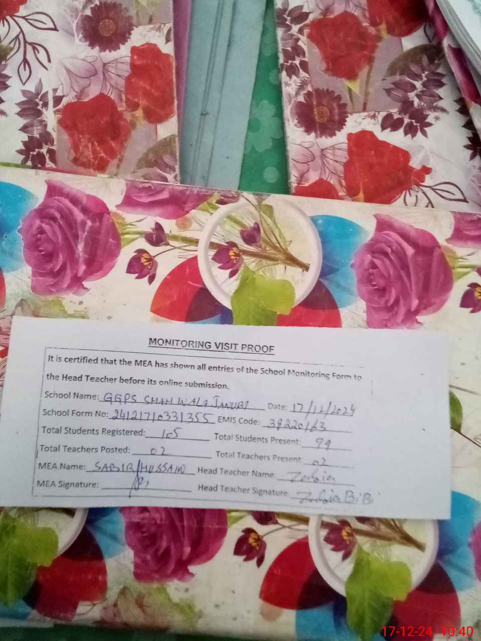 | Attendance Register | Head Teacher | MEA with School | Visit Proof |