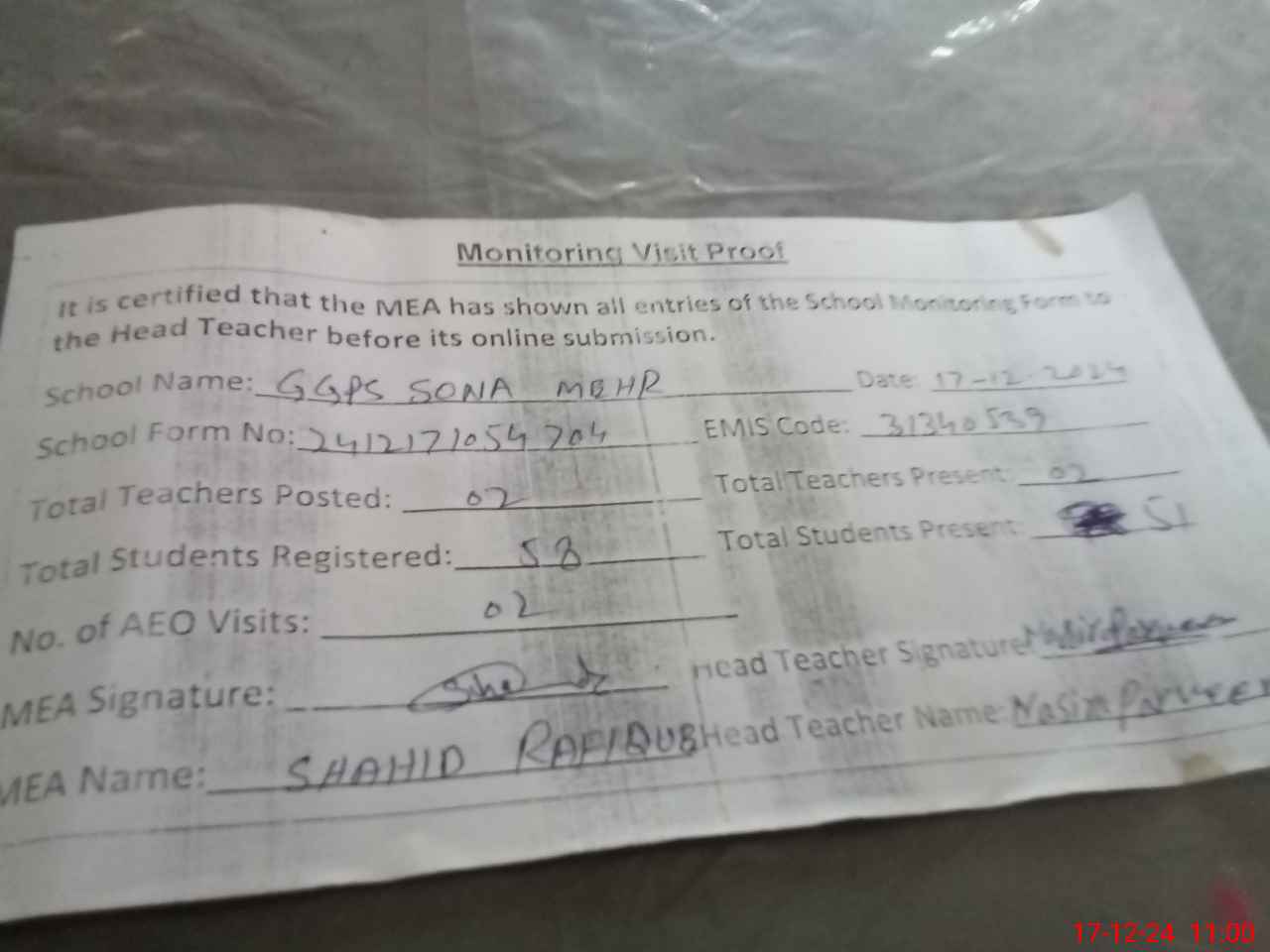 | EMIS Code: 31340539 | Name of School: GGPS SONA MEHR | |||