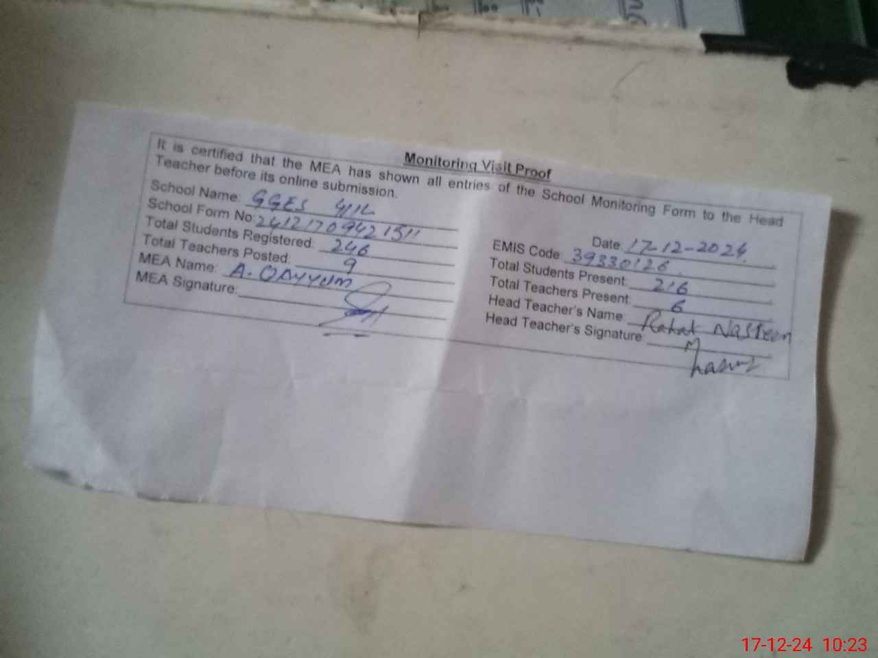 | EMIS Code: 39330126 | Name of School: GGES CHAK NO. 4/1-L | |||