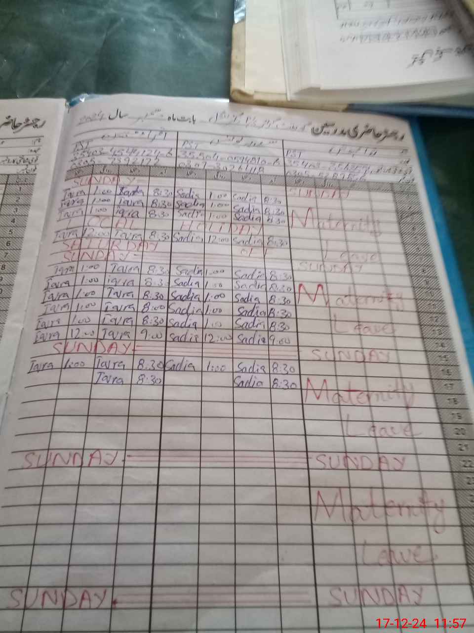 | 35**** | Ni**** Ma**** | PST | Regular | 0 | 0 | 0 | 0 | 0 | 0 | 0 | 0 | 0 | Maternity |