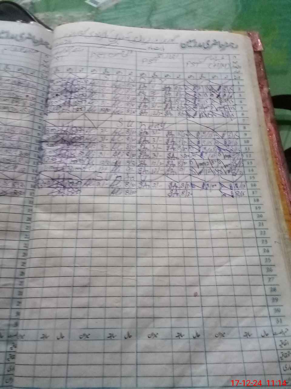 | CNIC | Full Name | Designation | R/C | Absence During Last Calender Month |