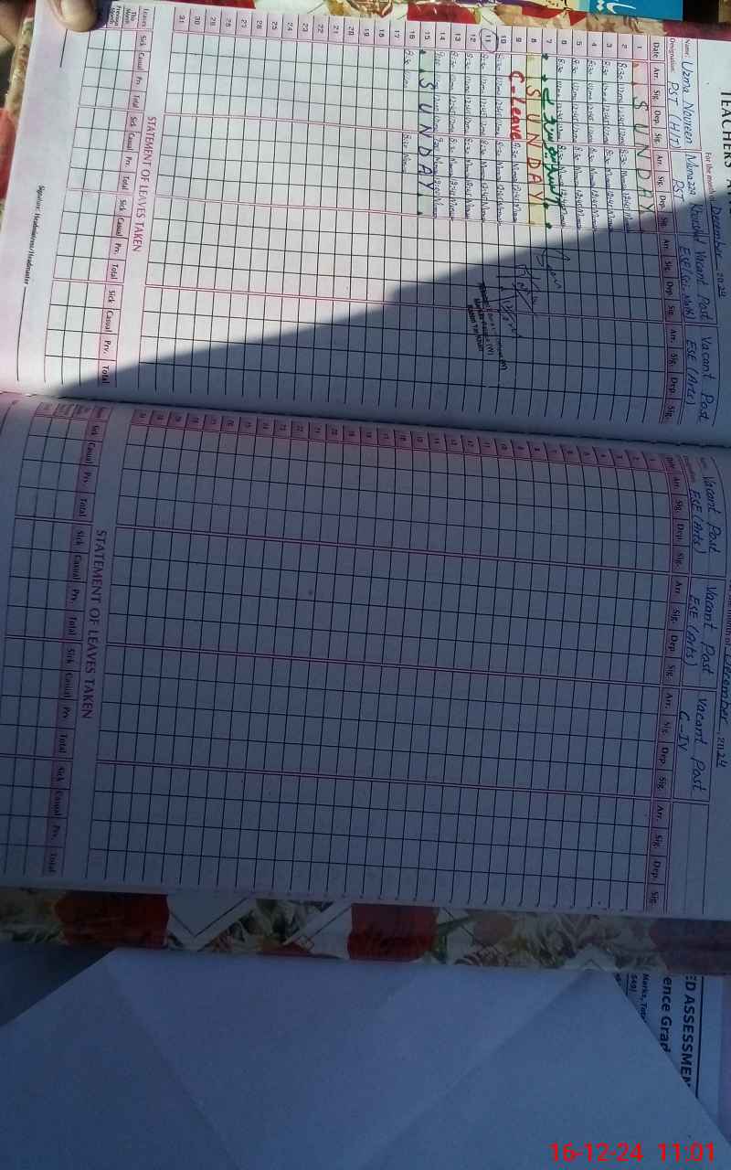 | CNIC | Full Name | Designation | R/C | Absence During Last Calender Month |