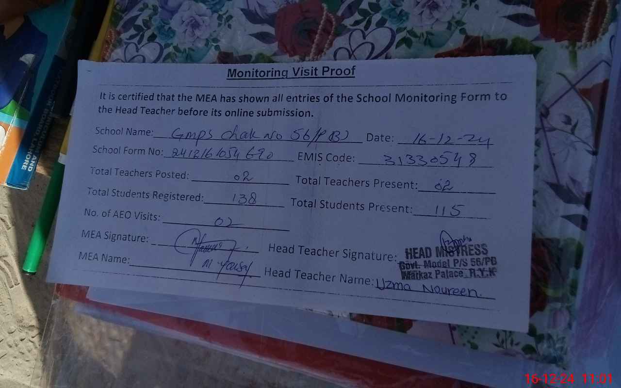 | EMIS Code: 31330549 | Name of School: GMPS CHAK 56/PB | |||