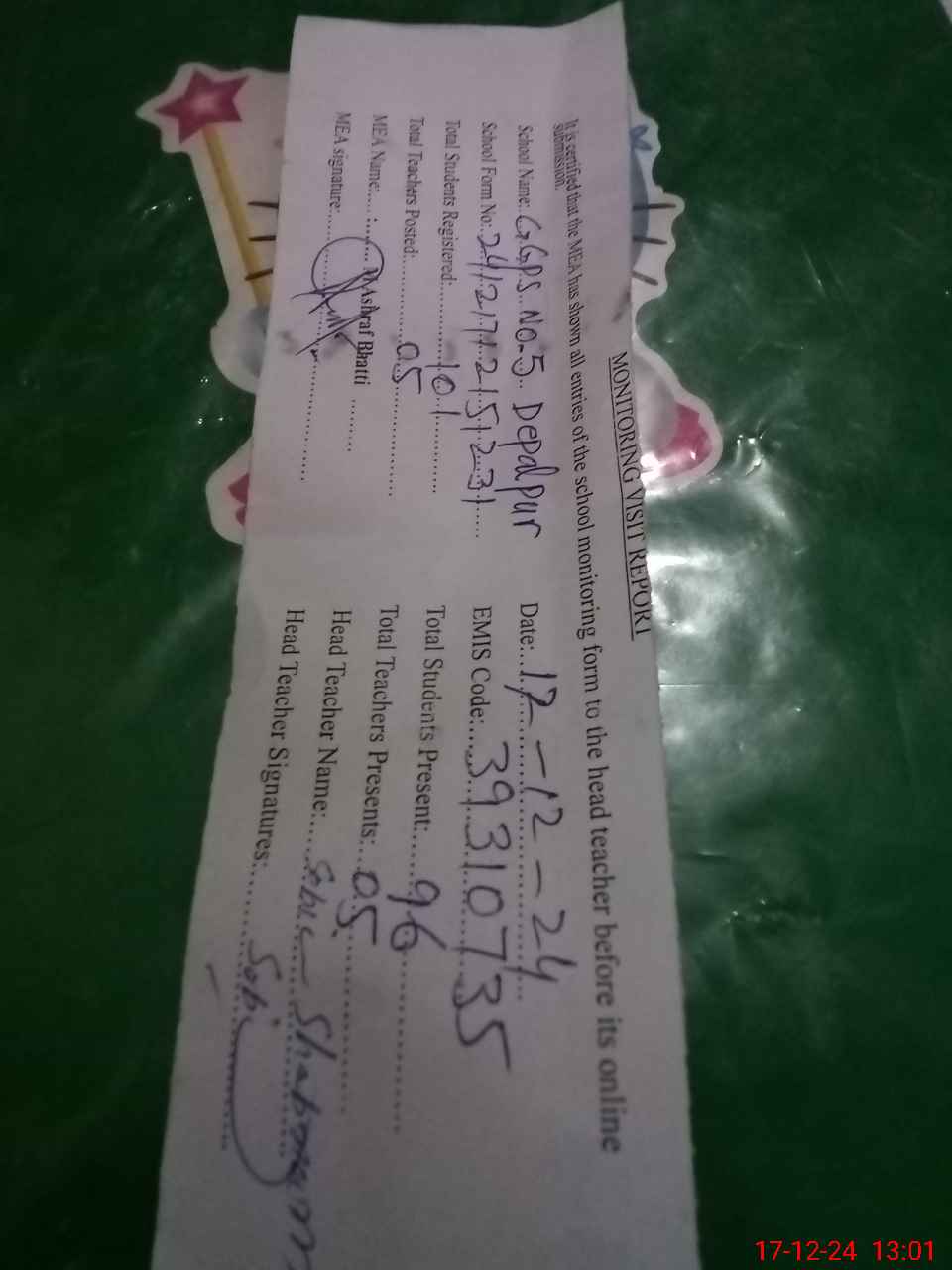 | EMIS Code: 39310735 | Name of School: GGPS NO 5 DEPALPUR | |||