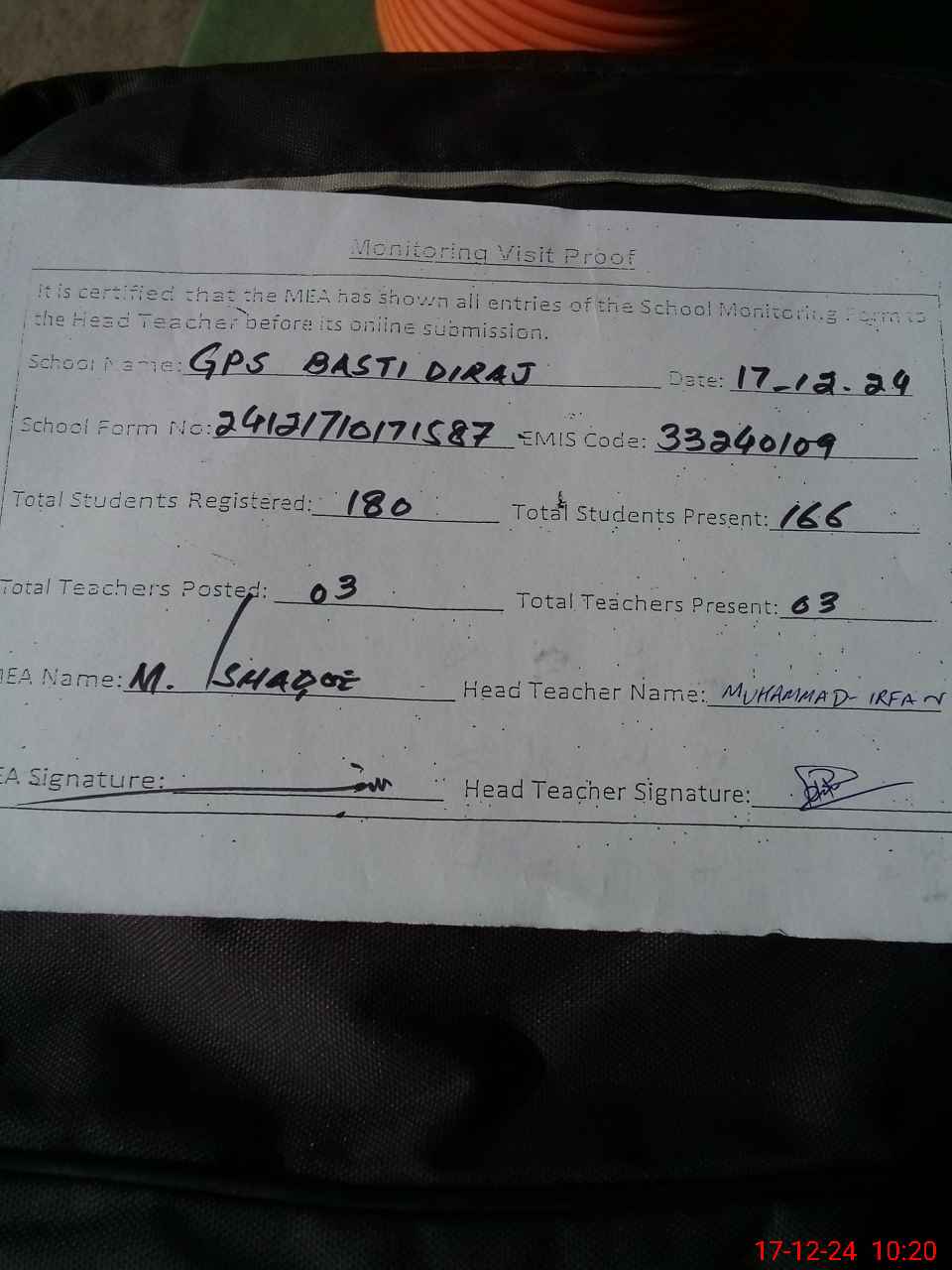 | EMIS Code: 33240109 | Name of School: GPS BASTI DIRAJ | |||