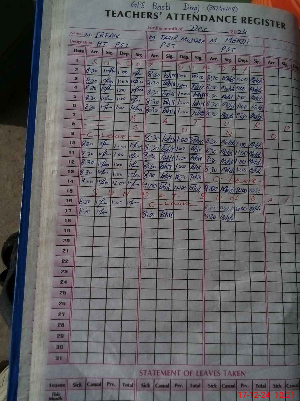 | Name: Mu**** Ir**** Designation: (School Headmaster's/Headmistress's) PST Phone/Cell Number: 03**** |