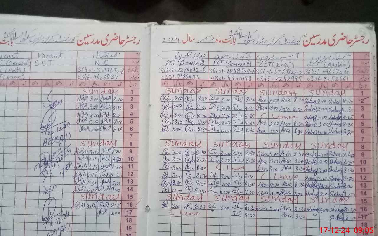 | CNIC | Full Name | Designation | R/C | Absence During Last Calender Month |