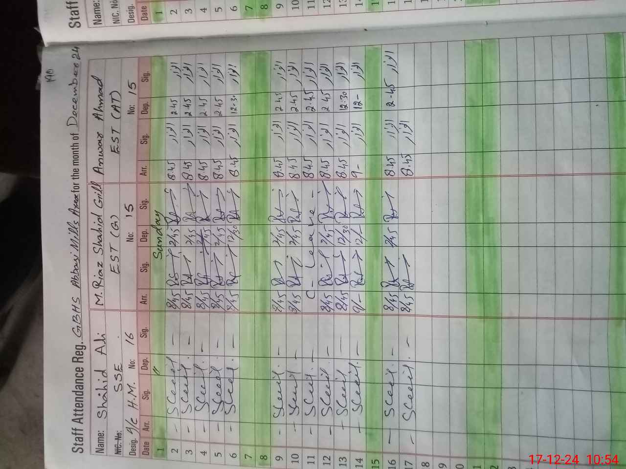| CNIC | Full Name | Designation | R/C | Absence During Last Calender Month |