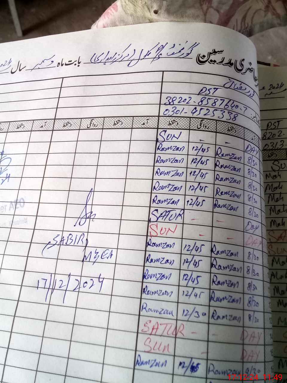 | CNIC | Full Name | Designation | R/C | Absence During Last Calender Month |