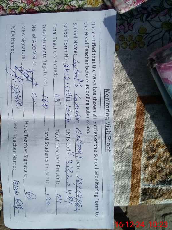 | EMIS Code: 31320481 | Name of School: GGPS GOUSIA COLONY | |||