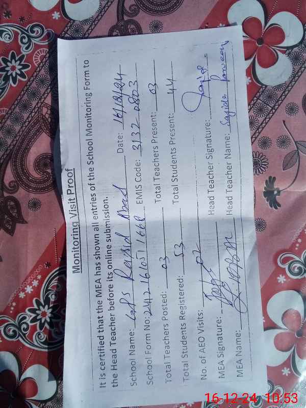 | EMIS Code: 31320803 | Name of School: GPS RASHID ABAD | |||