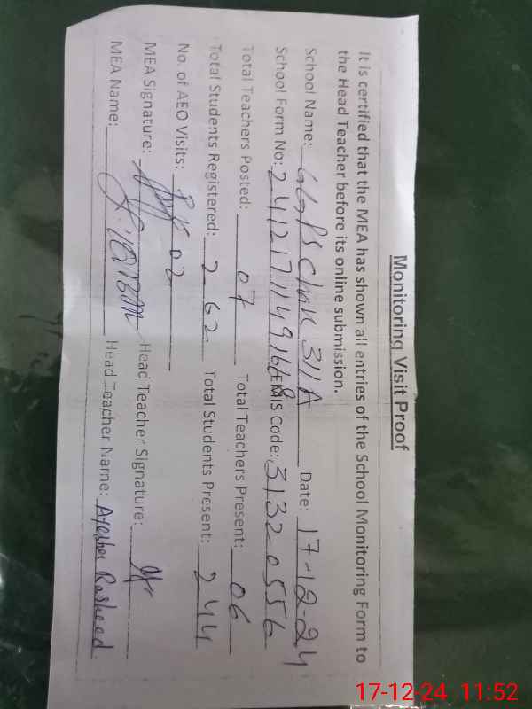 | Certified that this School was Inspected by the Undersigned MEA/DMO Today and the Information Stated Above is as Per Record. | |||||