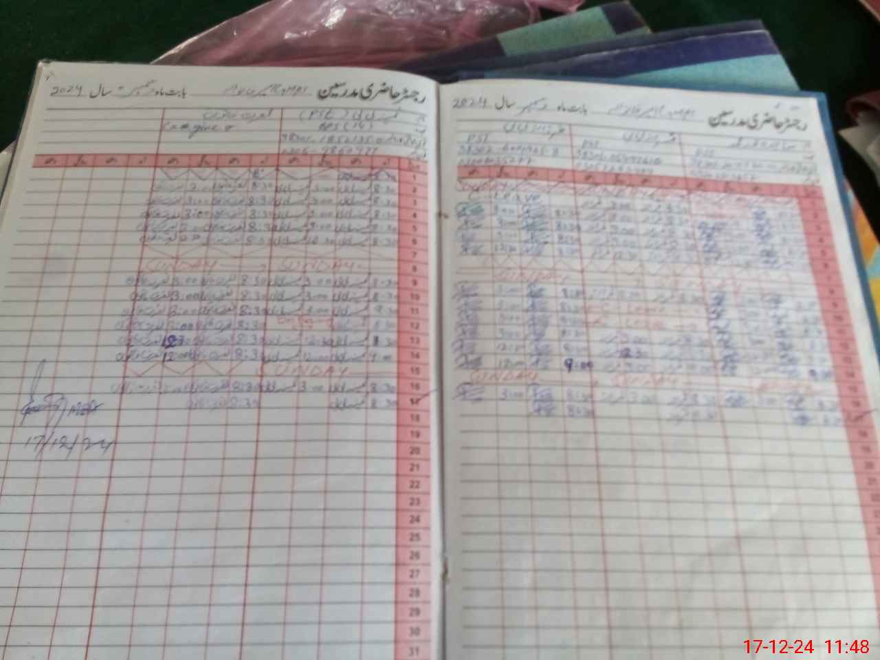 | CNIC | Full Name | Designation | R/C | Absence During Last Calender Month |
