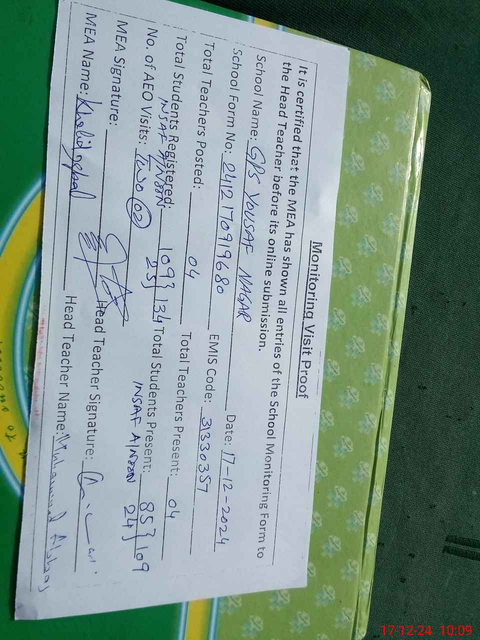 | EMIS Code: 31330357 | Name of School: GPS YOUSAF NAGAR | |||