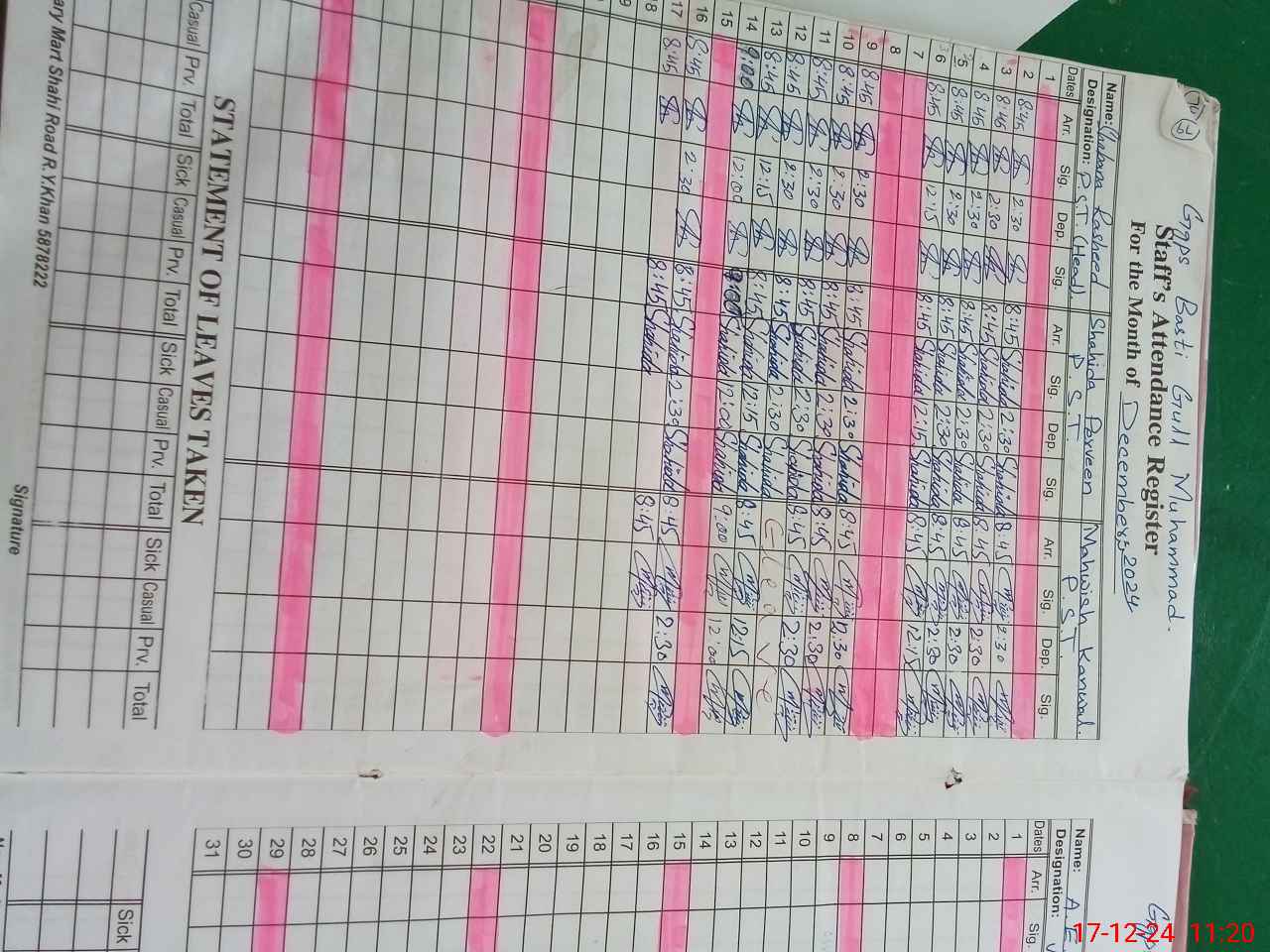 | Name: SH**** RA**** Designation: (School Headmaster's/Headmistress's) PST/PTC/JV Phone/Cell Number: 03**** |