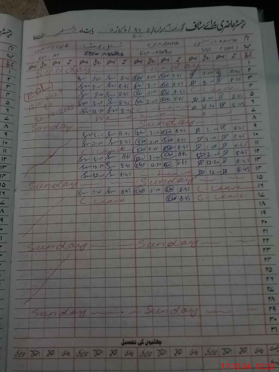 | CNIC | Full Name | Designation | R/C | Absence During Last Calender Month |