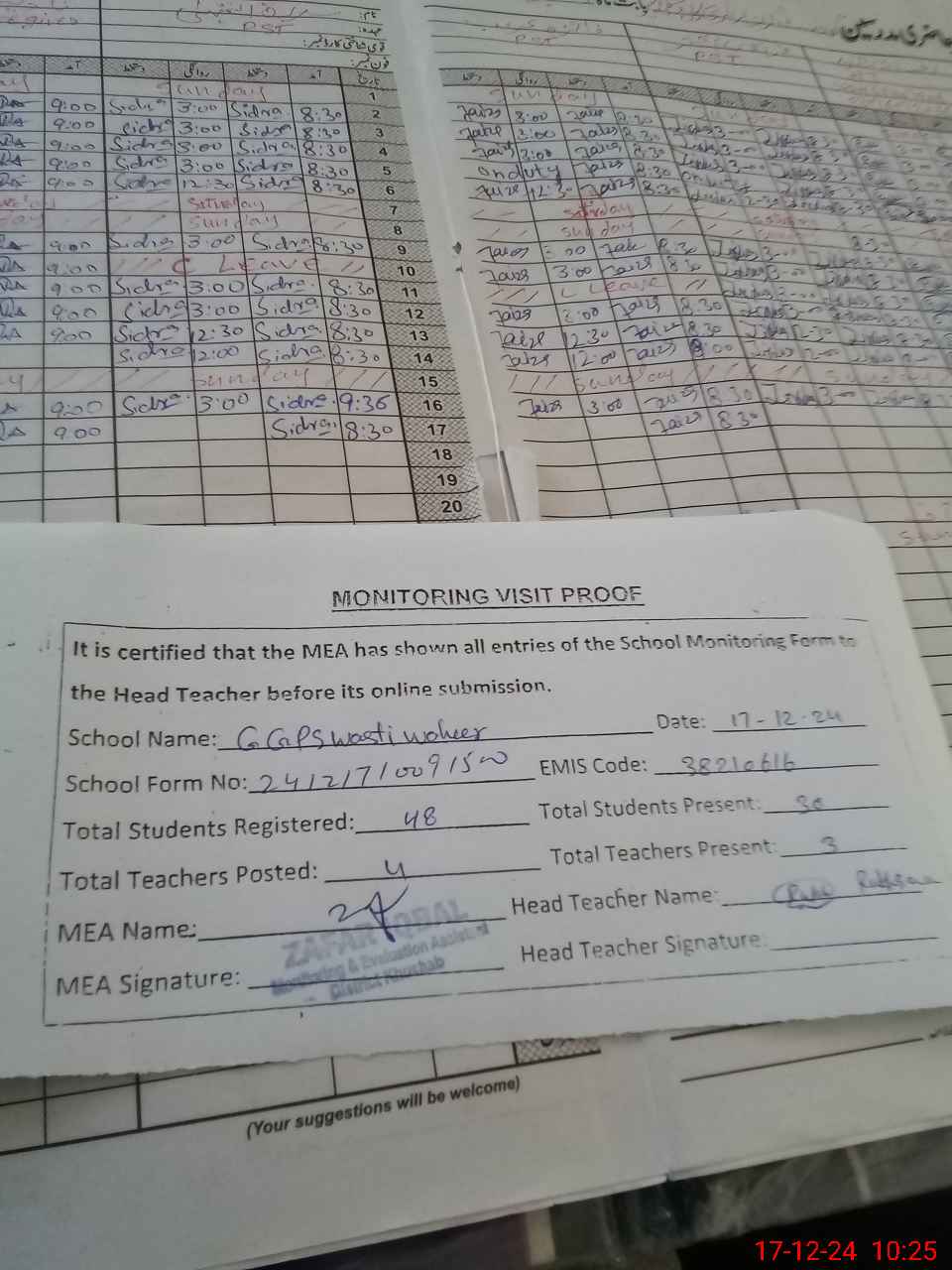 | Monitoring Date: 17-12-2024 | Start Time: 17-12-2024 10:01 AM | End Time: 17-12-2024 10:25 AM | Name of MEA: ZA**** IQ**** | |