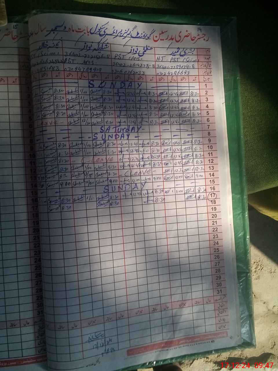 | Name: Uz**** Na**** Designation: (School Headmaster's/Headmistress's) PST Phone/Cell Number: 03**** |