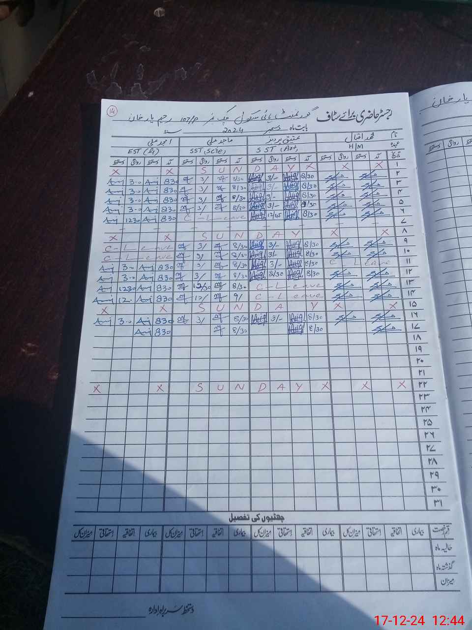 | 31**** | Bi**** Ah**** | NAIB QASID | Regular | 0 | 0 | 0 | 0 | 0 | 0 | 0 | 0 | 0 | Casual |