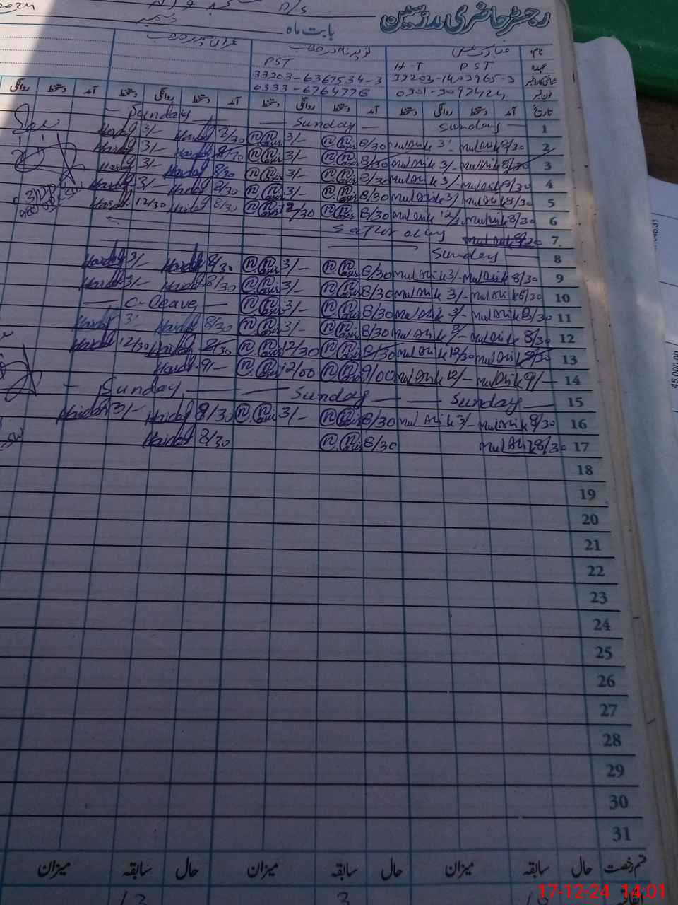 | CNIC | Full Name | Designation | R/C | Absence During Last Calender Month |