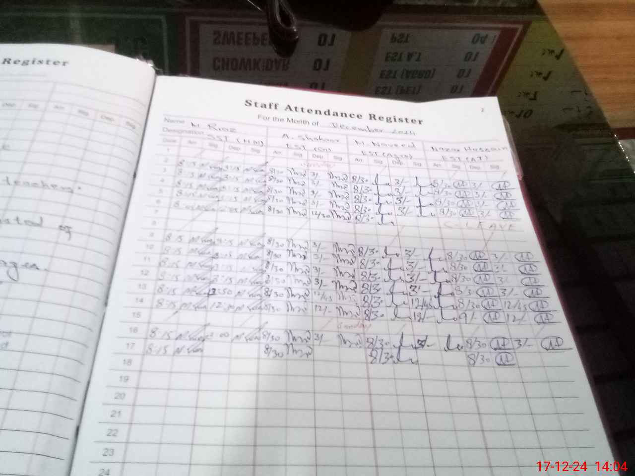 | CNIC | Full Name | Designation | R/C | Absence During Last Calender Month |