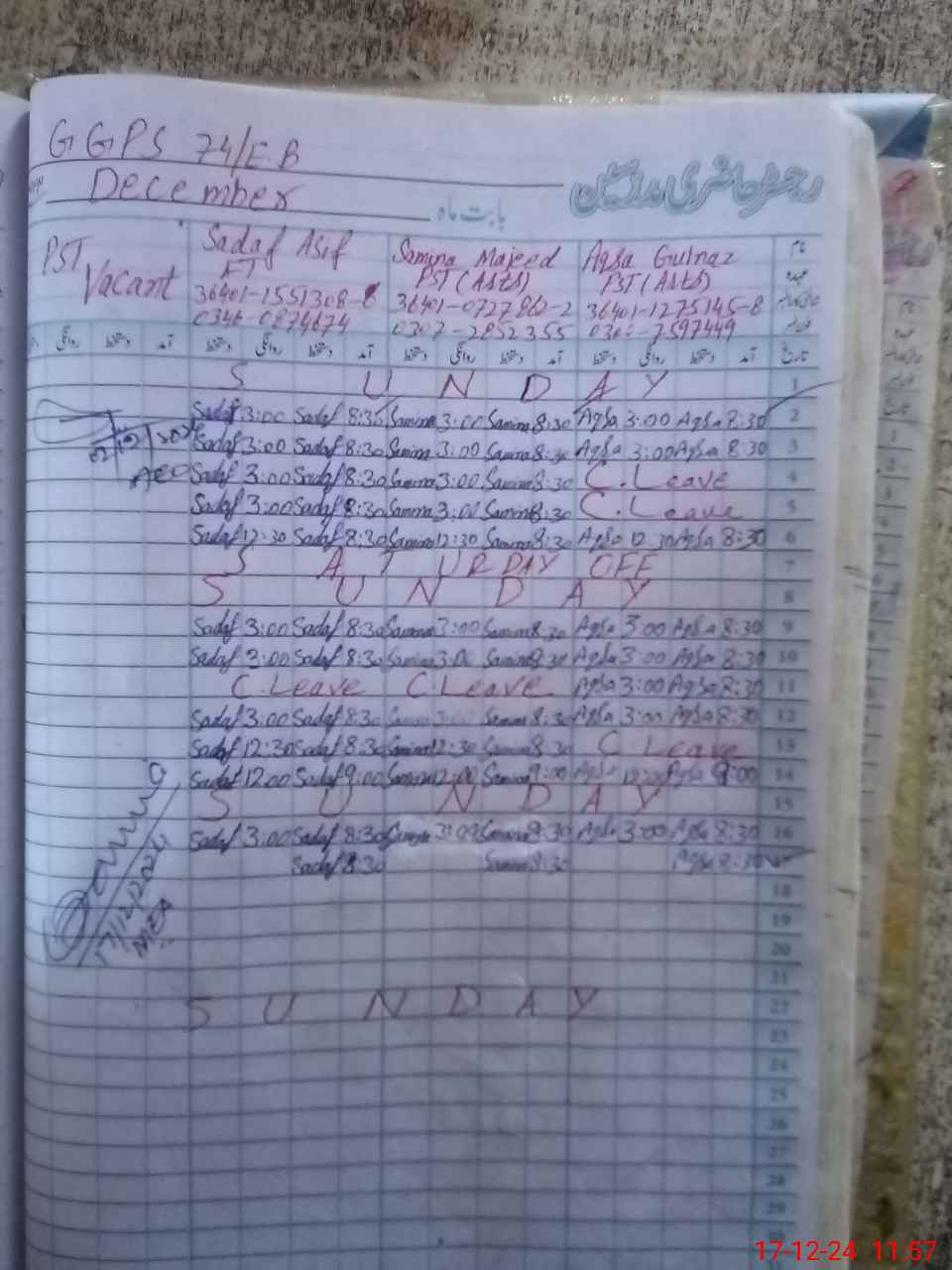 | Name: AQ**** GU**** Designation: (School Headmaster's/Headmistress's) PST Phone/Cell Number: 03**** |