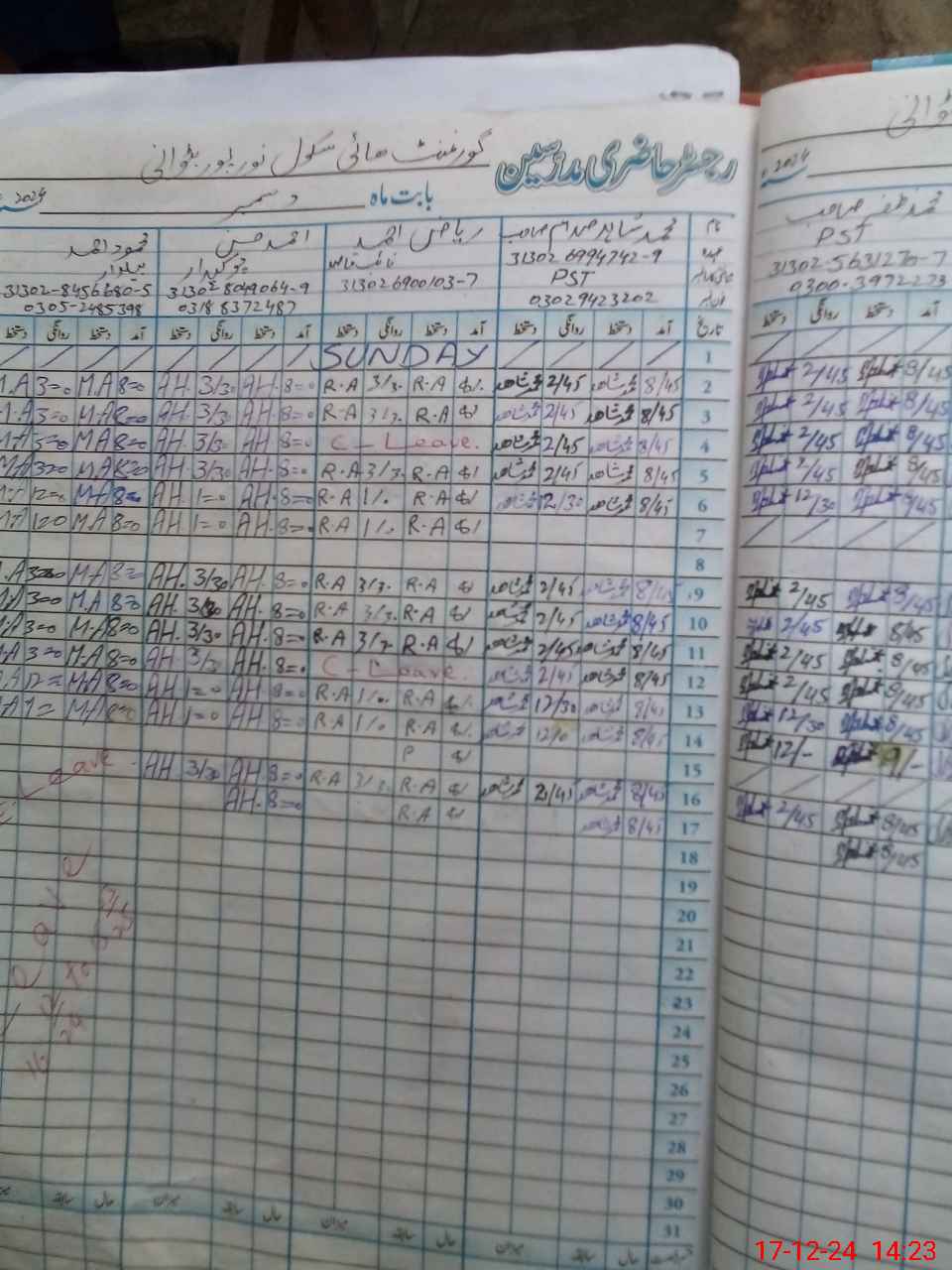 | CNIC | Full Name | Designation | R/C | Absence During Last Calender Month |