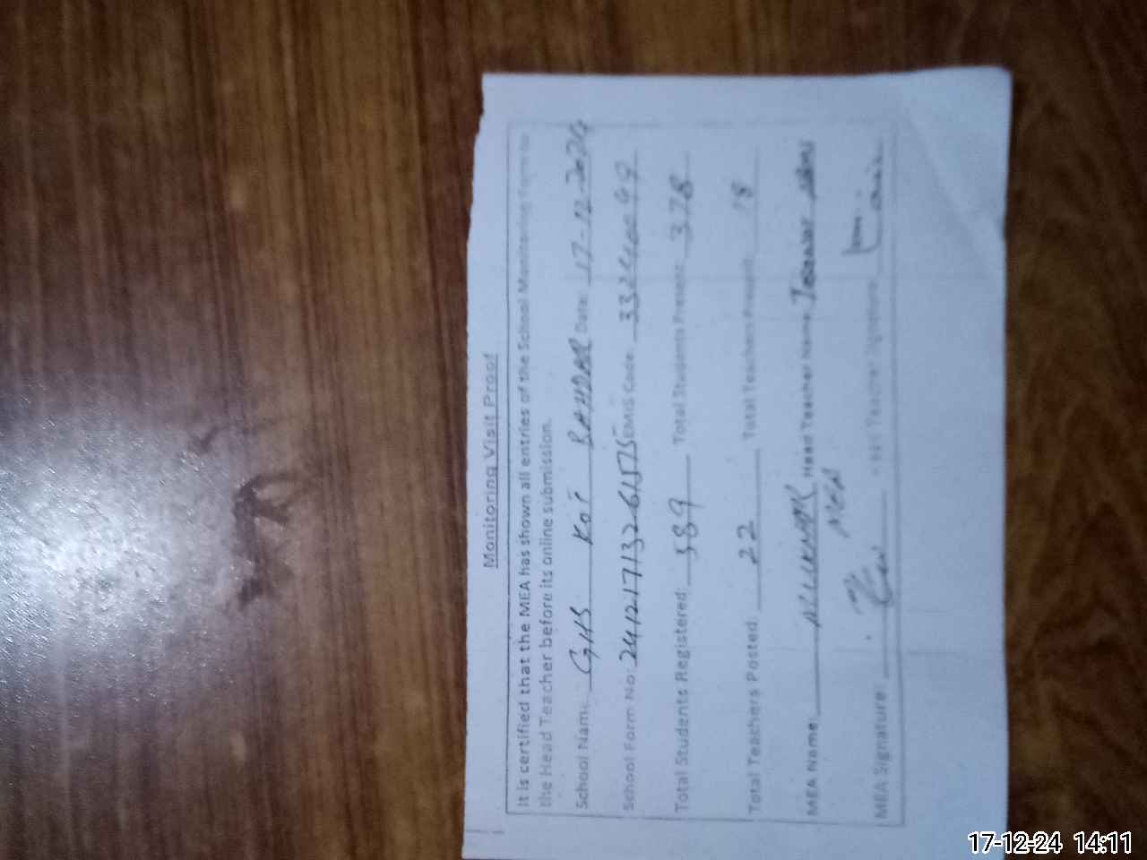 | EMIS Code: 33240049 | Name of School: GHS KOT BAHADAR SHAH | |||