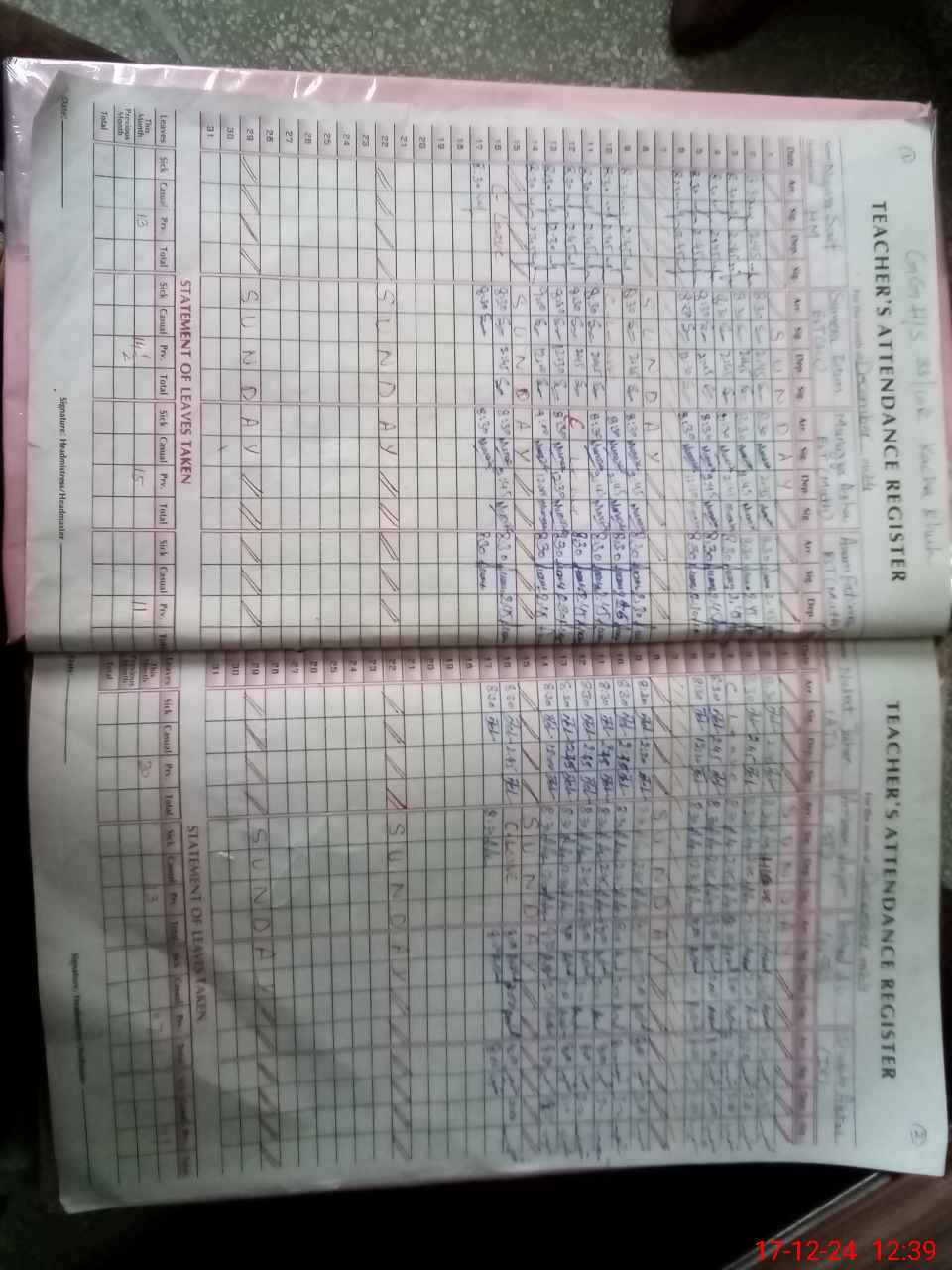 | CNIC | Full Name | Designation | R/C | Absence During Last Calender Month |