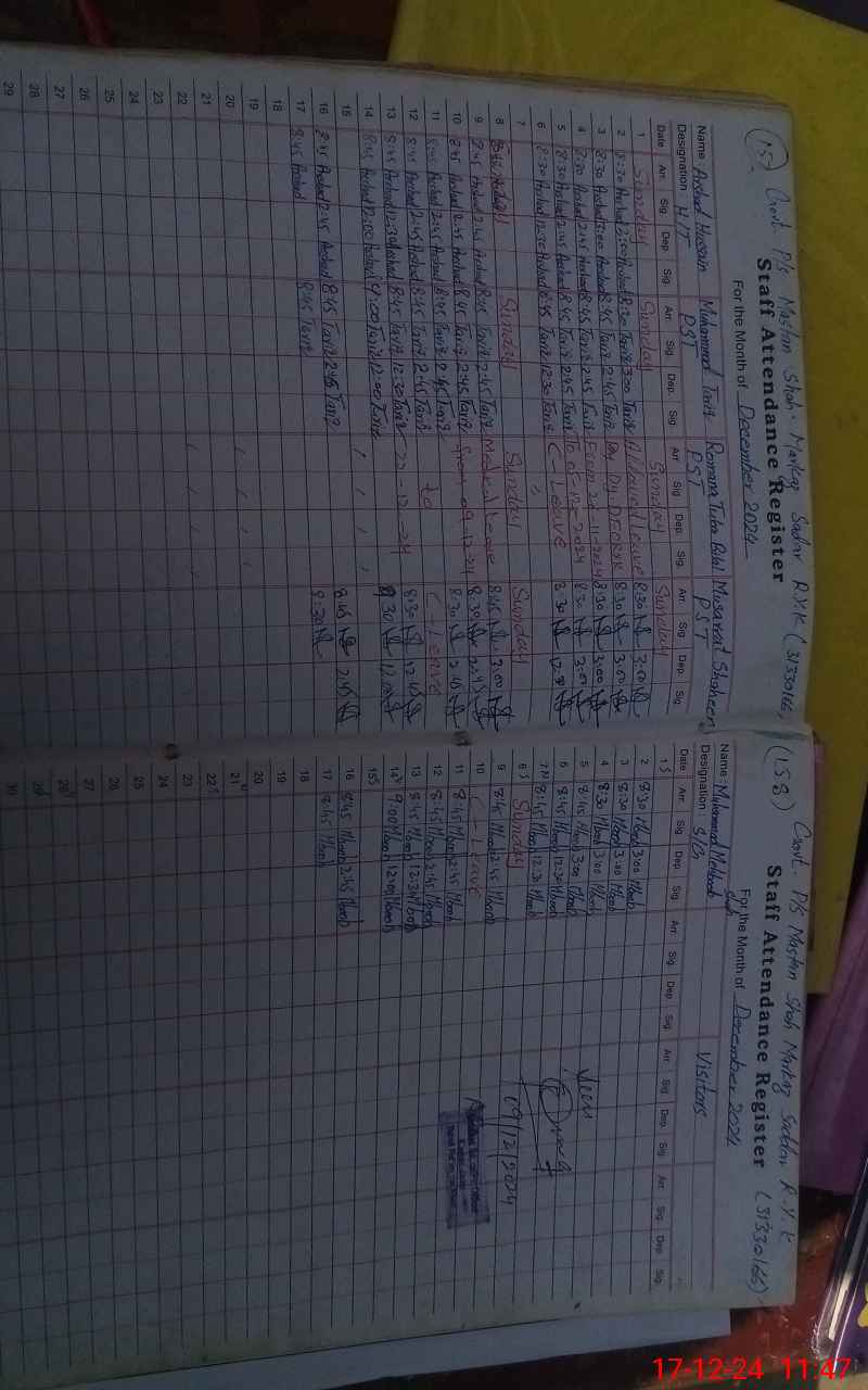 | CNIC | Full Name | Designation | R/C | Absence During Last Calender Month |