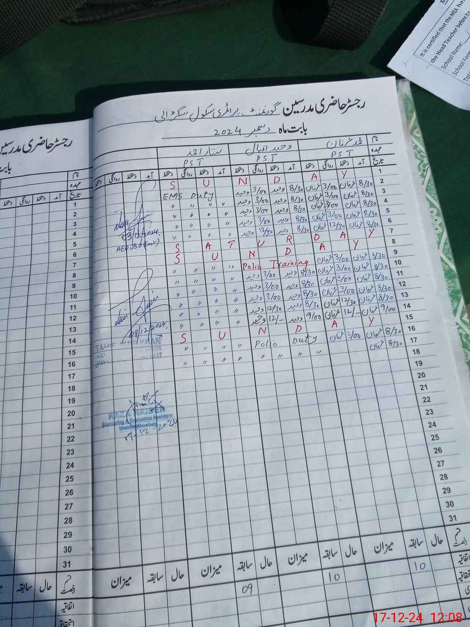 | Name: Mu**** Ir**** Designation: (School Headmaster's/Headmistress's) PST Phone/Cell Number: 03**** |