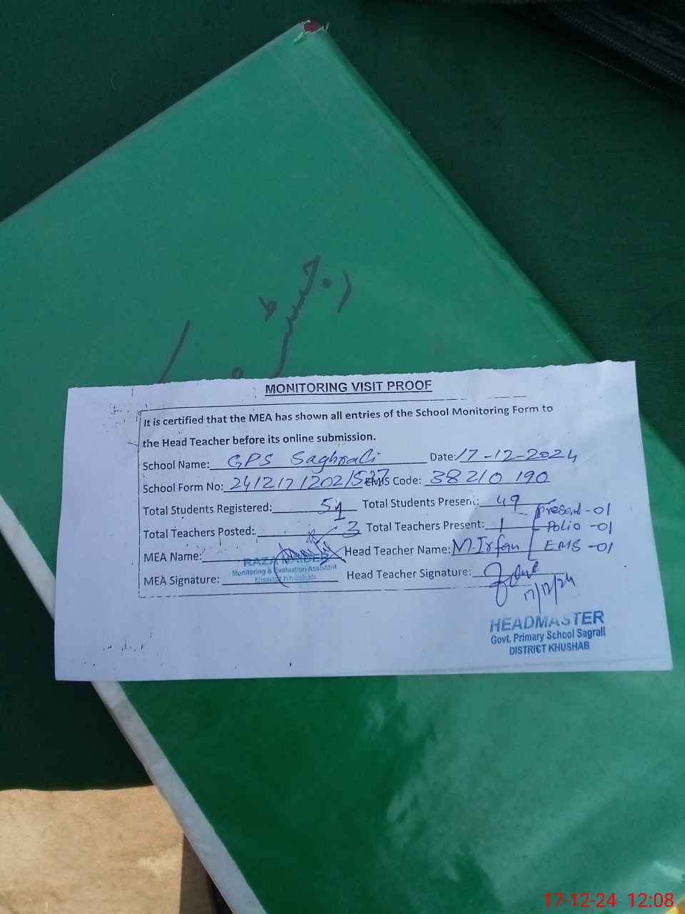 | EMIS Code: 38210190 | Name of School: GPS SAGHRALI | |||