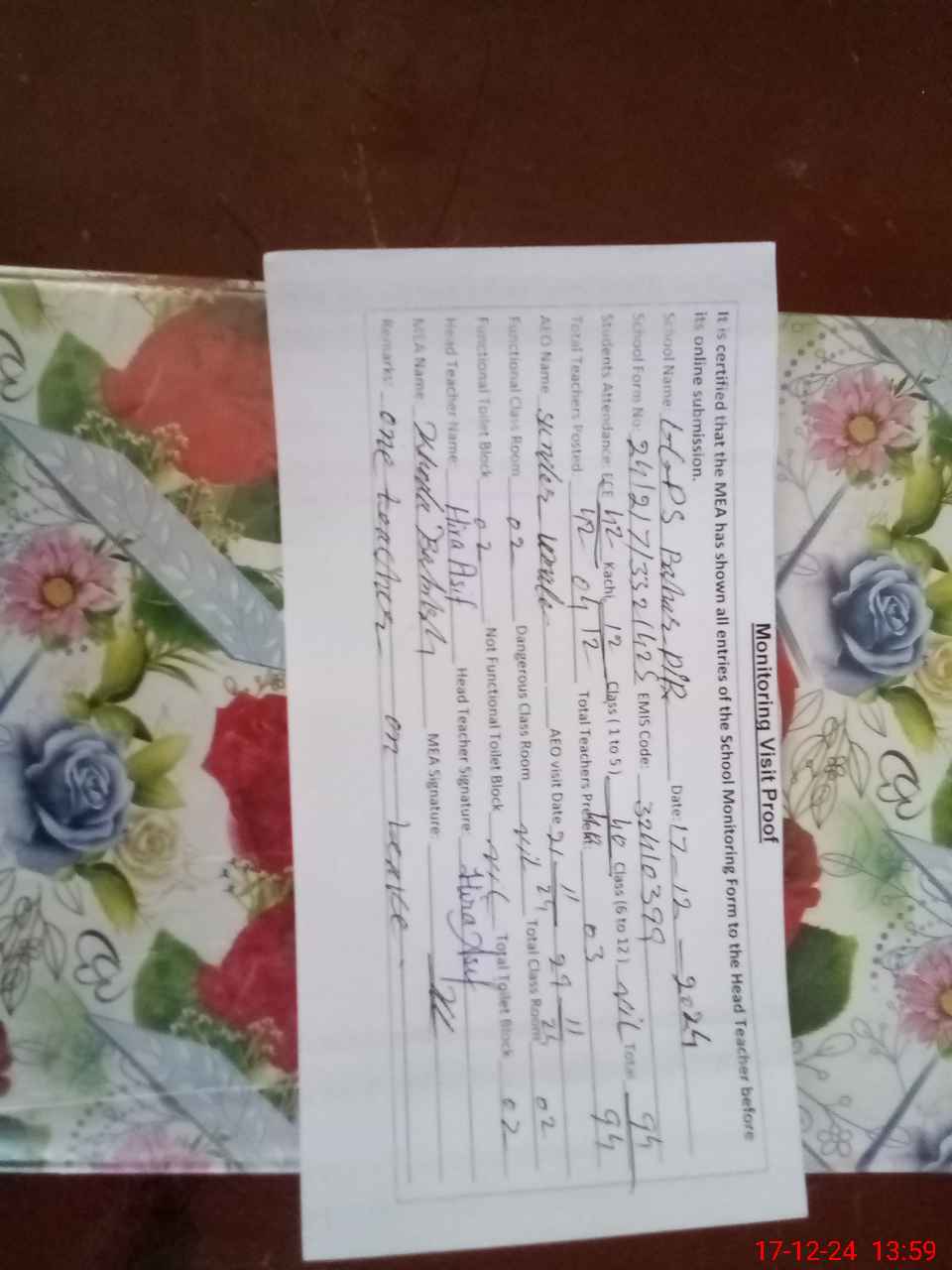 | EMIS Code: 32410399 | Name of School: GGPS BAHAR PIR | |||