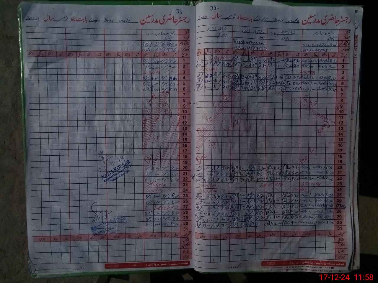 | CNIC | Full Name | Designation | R/C | Absence During Last Calender Month |