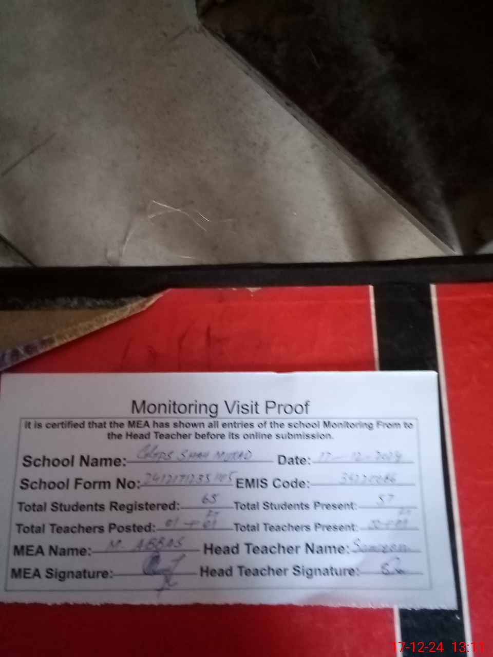 | EMIS Code: 39220066 | Name of School: GGPS SHAH MURAAD | |||