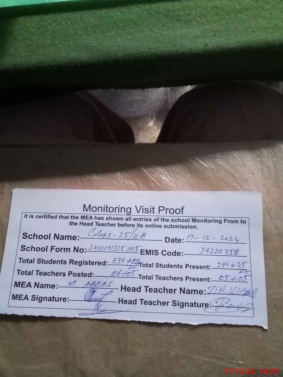 | EMIS Code: 39220358 | Name of School: GGHS 25 KB | |||