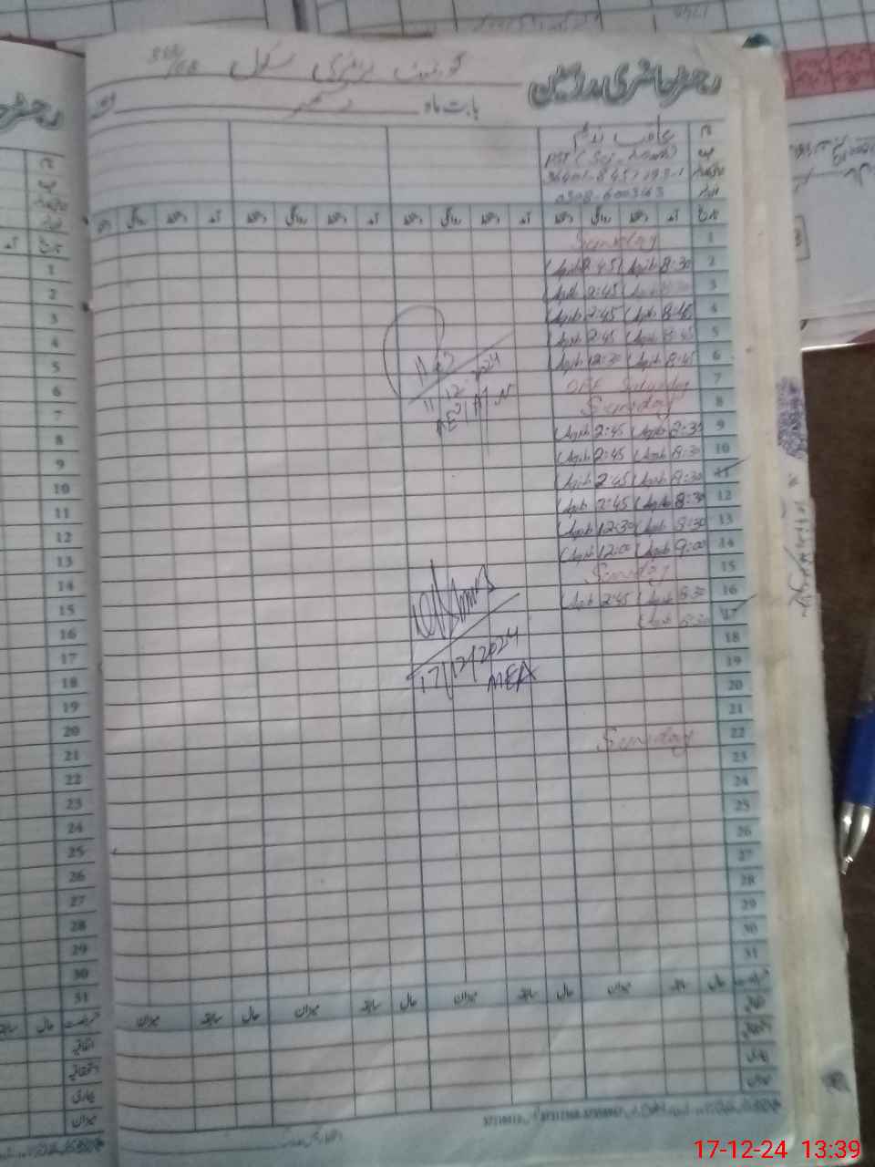 | CNIC | Full Name | Designation | R/C | Absence During Last Calender Month |