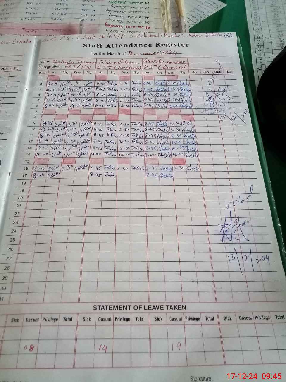 | 31**** | An**** Ki**** | 1 | 0 | 0 | 30 | 0 | 0 | 0 | 0 | 0 | 0 | Absent (Un-Authorized) | |