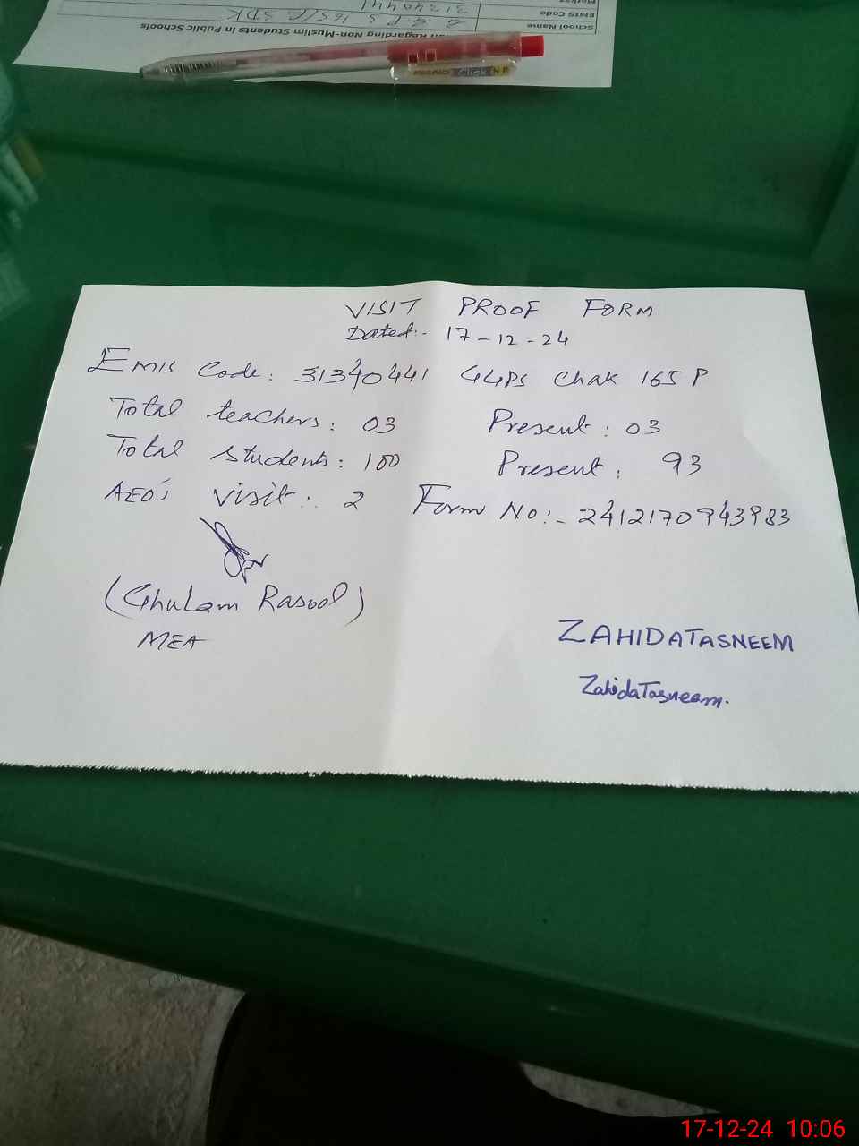 | Name: ZA**** Ta**** Designation: (School Headmaster's/Headmistress's) PST Phone/Cell Number: 03**** |