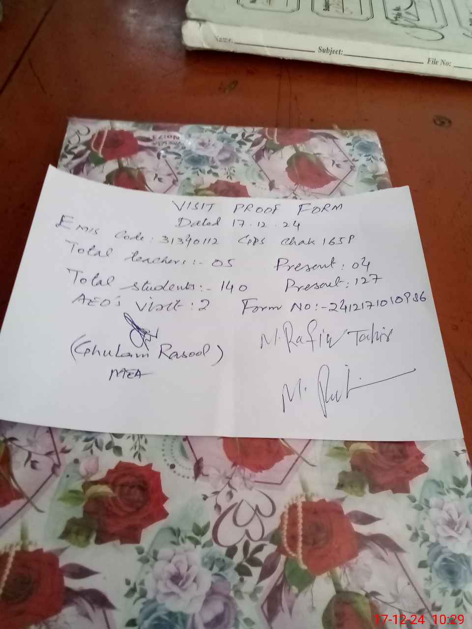 | EMIS Code: 31340113 | Name of School: GPS CHAK 165-P | |||