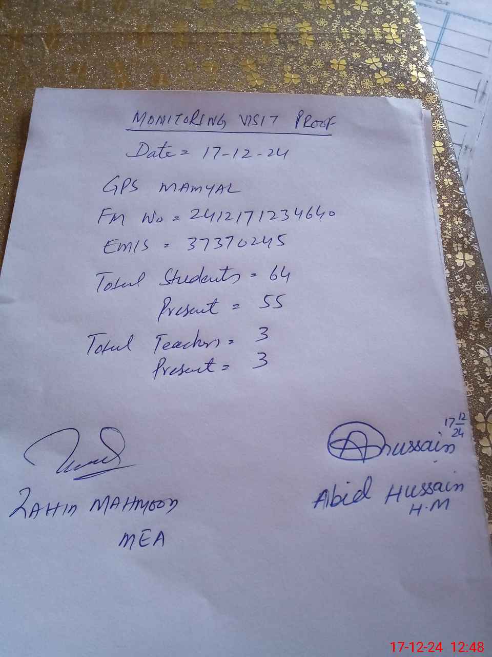 | EMIS Code: 37370245 | Name of School: GPS MAMYAL | |||