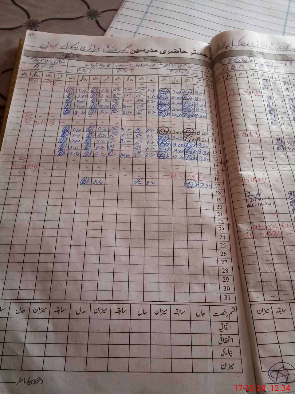 | Name: AB**** HU**** Designation: (School Headmaster's/Headmistress's) PST Phone/Cell Number: 03**** |